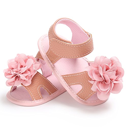 (カエルフロッグ)女の子 赤ちゃん サンダル 可愛い 花 フラワー モチーフ 涼しい 軽量 マジックテープ 付き 子供 ベビー シューズ ピンク 6-12ヶ月に対応 夏