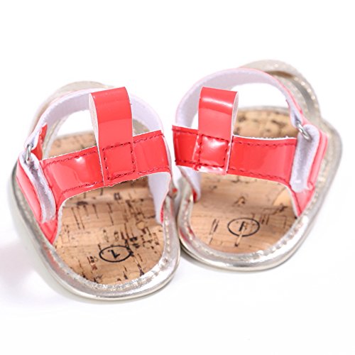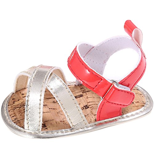 女の子 赤ちゃん サンダル ガールズ ベビー 女児 夏 ファーストシューズ 柔らかい PUレザー マジックテープ ベビー シューズ 滑り止め ソフト底の靴 レッドxゴールド 0-6ヶ月に対応 夏