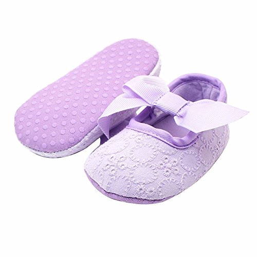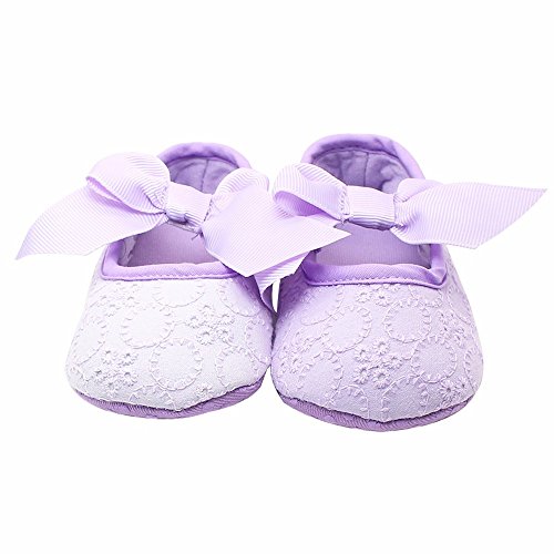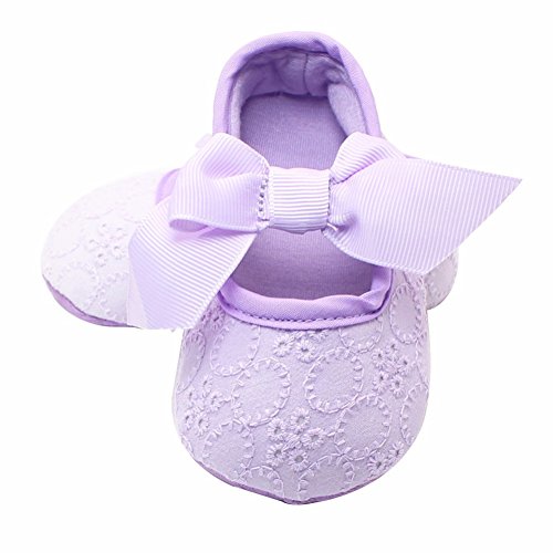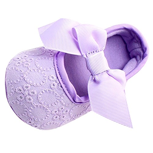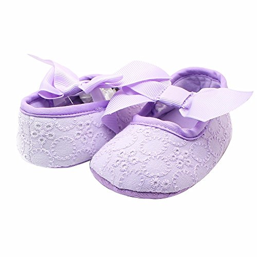可愛いプリンセスシューズ 女の子 赤ちゃん 快適 涼しい 可愛い蝶結び おしゃれ靴 新生児 女児 滑り止め ソフト底 ベビーシューズ 結婚式 出産の祝い 柔らかい綿布 パープル 0-6ヶ月に対応 夏