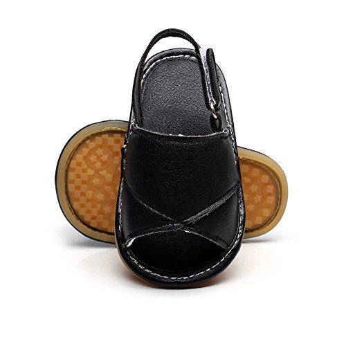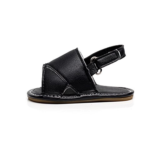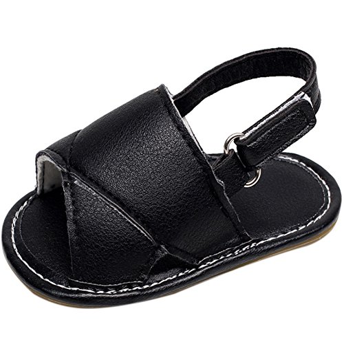 ベビーサンダル おしゃれ 流行 ファッション キッズサンダル 涼しい 履き心地 柔らか PUレザー赤ちゃんサンダル マジックテープ付き 滑り止め 可愛い 男女兼用 シューズ ブラック 12-18ヶ月に対応 夏