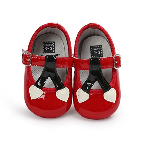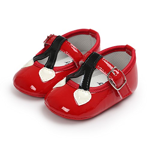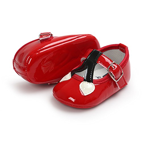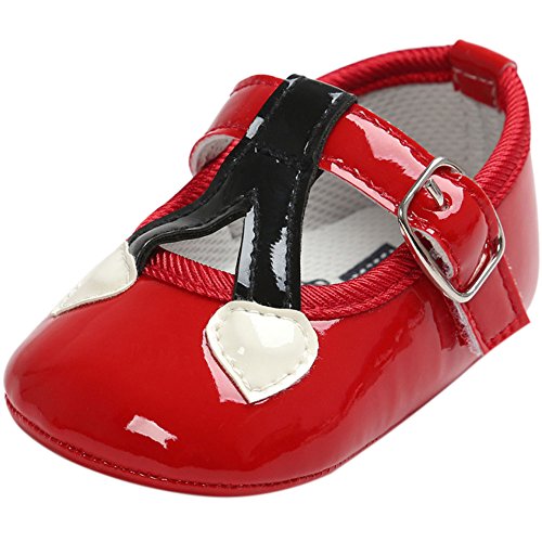 ベビープリンセスシューズ ガールズ可愛いフォーマル靴 王女靴 マジックテープ付き 結婚式 誕生日 PUレザー レッド 11cm 0-6ヶ月に対応 夏
