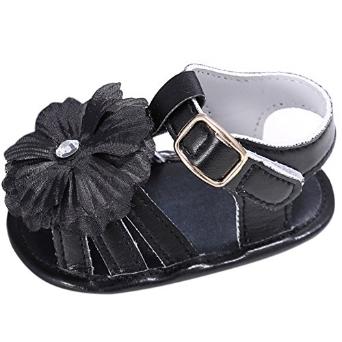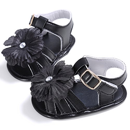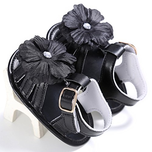 (カエルフロッグ)女の子 ベビー おしゃれ 靴 フラワー モチーフ サンダル 赤ちゃん キッズ 履き心地 柔らか マジックテープ 滑り止め 付き 可愛い 花 女の子 シューズ ブラック 0-6ヶ月 夏