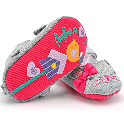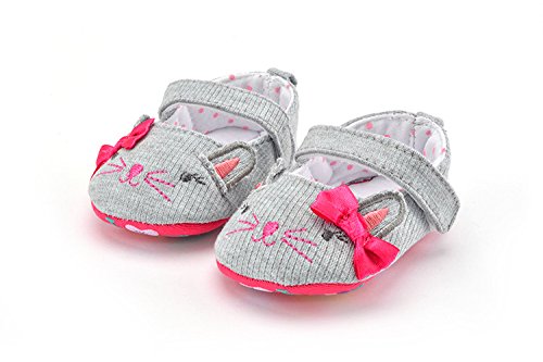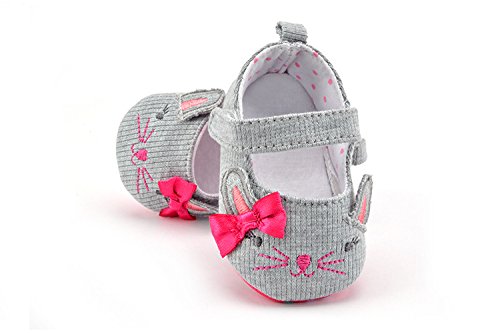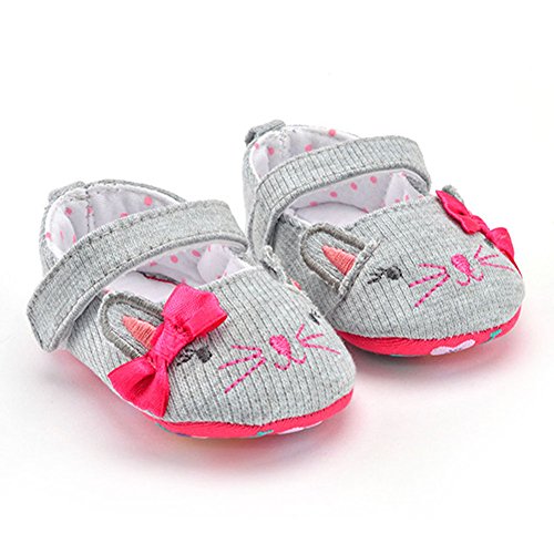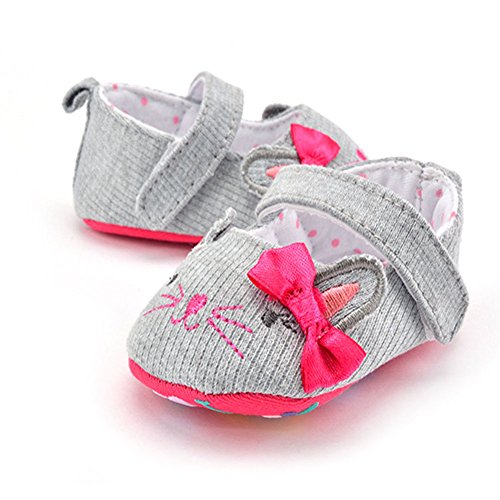 (カエルフロッグ)ベビーシューズ 女の子の赤ちゃん 可愛い 猫 モチーフ 蝶結び付け プリンセスシューズ 女児 綺麗 柔らかい フォーマル靴 女の子 マジックテープ 付き靴 結婚式 出産の祝い グレー 綿布 12-18ヶ月に対応靴 春 夏 秋