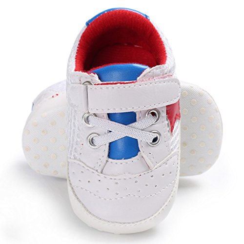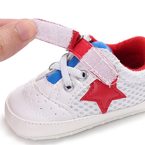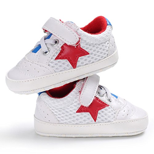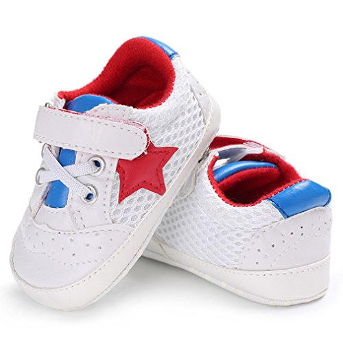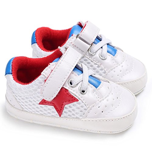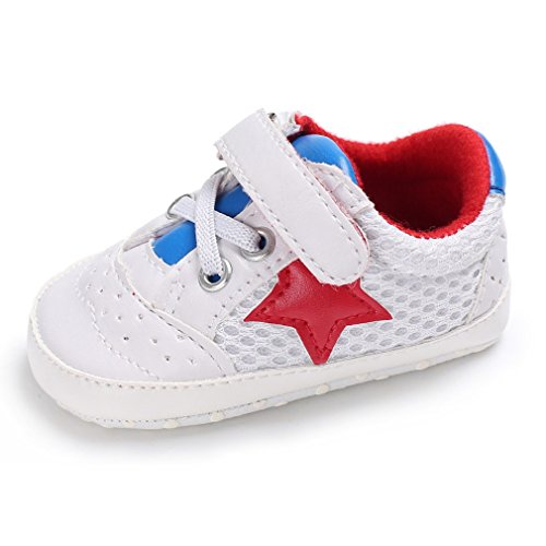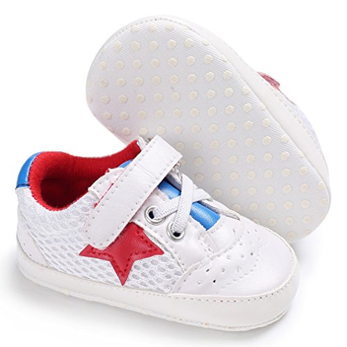 ベビースニーカー キッズ可愛いスター付き運動靴 赤ちゃんクラシックメッシュスポーツシューズ ガールズ ボーイズ 歩行練習 通気性がいい マジックテープ付け靴 PUレザー ホワイト 11cm 0-6ヶ月に対応靴 春夏秋
