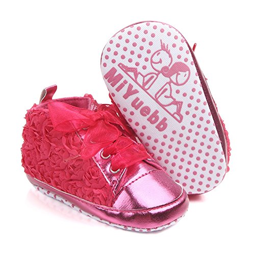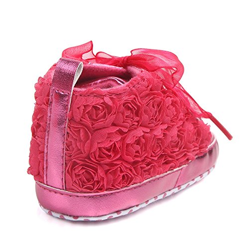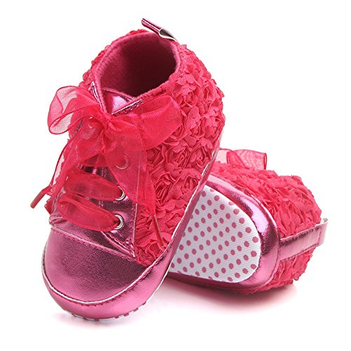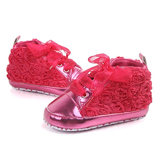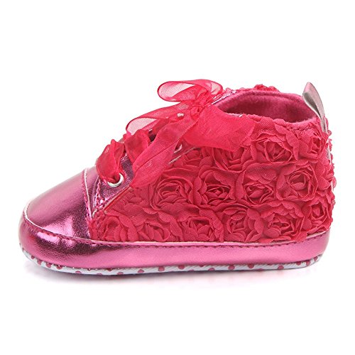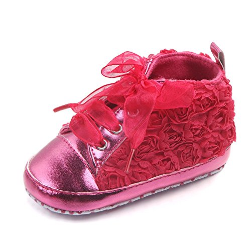 ベビー可愛いスニーカー ガールズ綺麗な花付きズック靴 女の子赤ちゃんレースアップシューズ 子供 快適 滑りとめ 歩行練習 柔らかい底 綿布 13cm バラ色 12-18ヶ月に対応靴 秋春夏