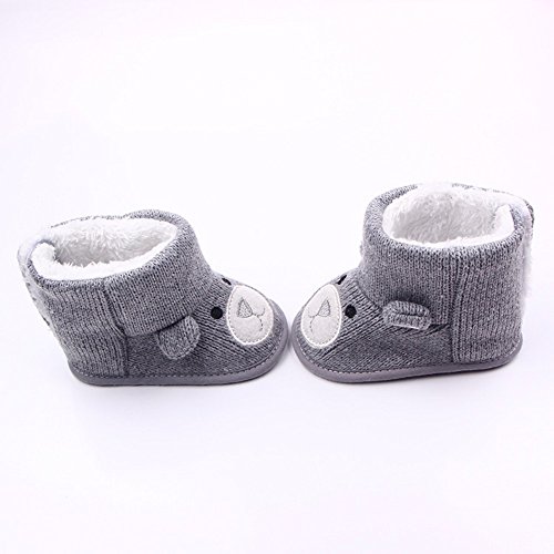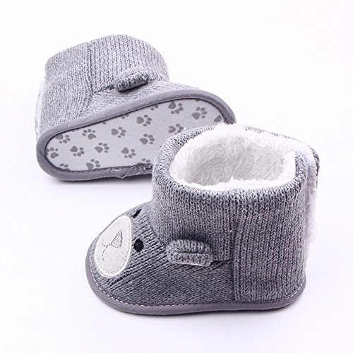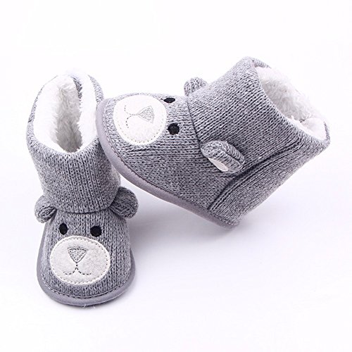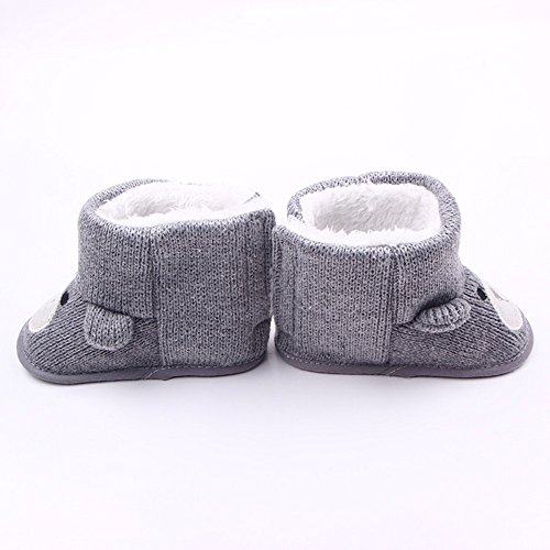 ベビーブーツ キッズシューズ 子供可愛いクマ付きニット靴 新生児 男児女児 暖かい 柔らかい 結婚式誕生日プレゼント マジックテープ付き 履きやすい 綿 グレー 12cm 6-12ヶ月に対応靴 冬秋春