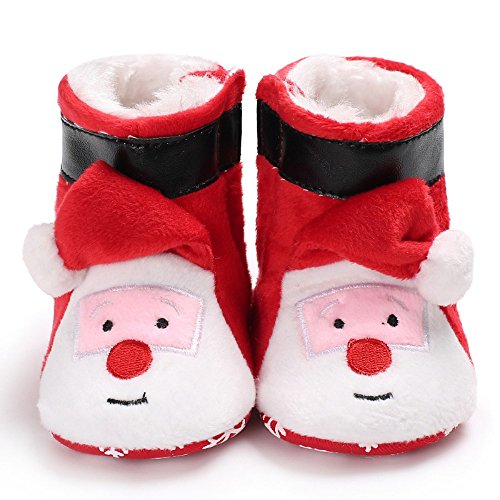 ベビーブーツ 子供サンタクロース付き靴 クリスマス キッズシューズ 女の子男の子 新生児 暖かい 結婚式誕生日プレゼント 綿 レッド/赤い 12cm 6-12ヶ月に対応靴 冬秋春