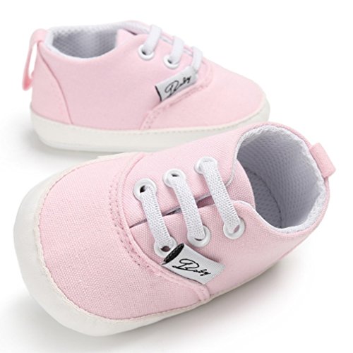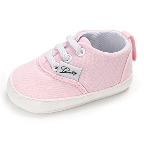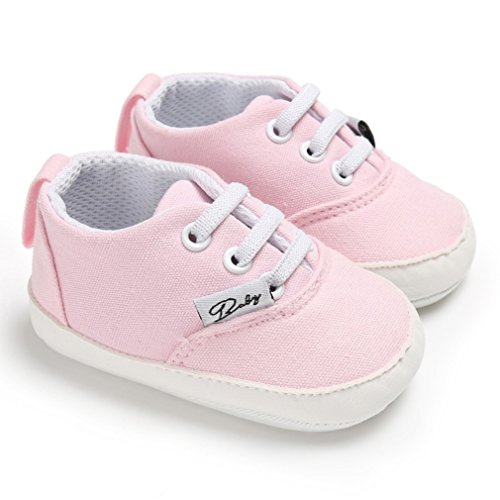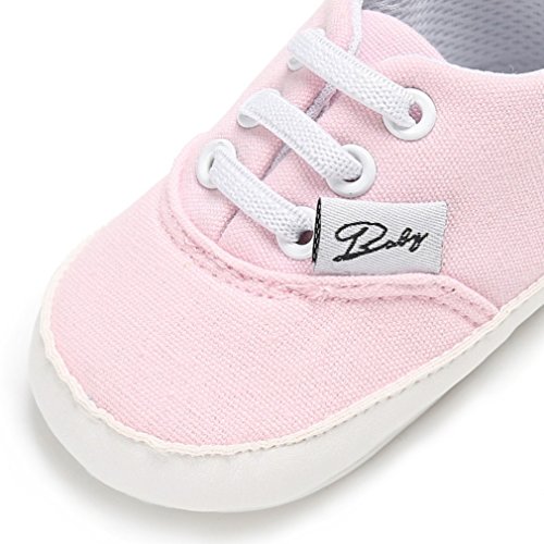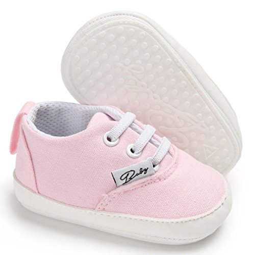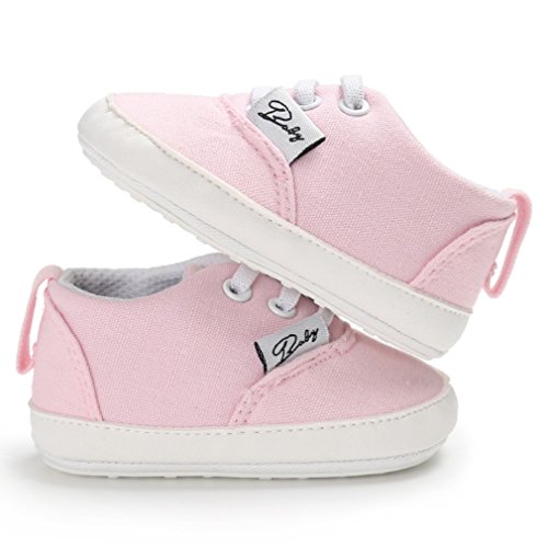 ベビースニーカー 赤ちゃんズック靴 レースアップシューズ 男女兼用 可愛い 快適 散歩 歩行練習 ゴム底 綿布 ピンク 0-6ヶ月に対応靴 春 夏 秋