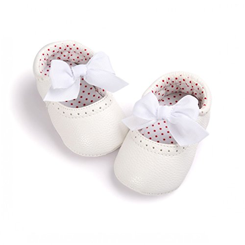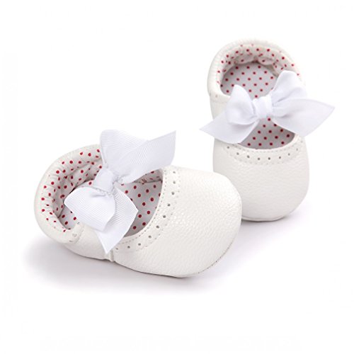 ガールズプリンセスシューズ ベビー 女の子 可愛いフォーマル靴 蝶結び 王女靴 女児 マジックテープ付き靴 快適 綺麗 柔らかい底靴 結婚式 PUレザー 白い 12-18ヶ月に対応靴 春 夏 秋
