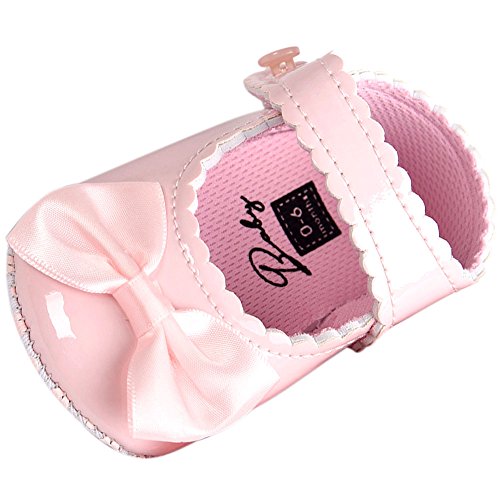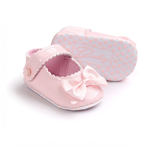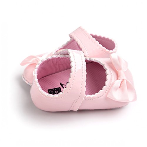 ベビープリンセスシューズ 可愛い蝶結びフォーマル靴 女児 マジックテープ付き王女靴 結婚式 誕生日 PUレザー ピンク 12CM 6-12ヶ月に適応靴 春夏秋