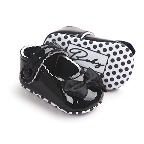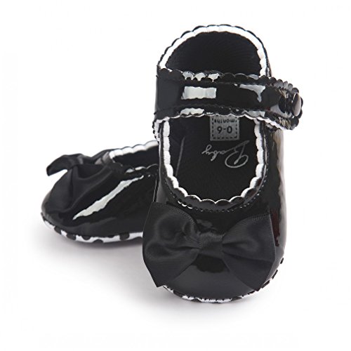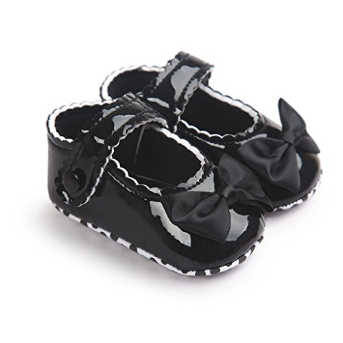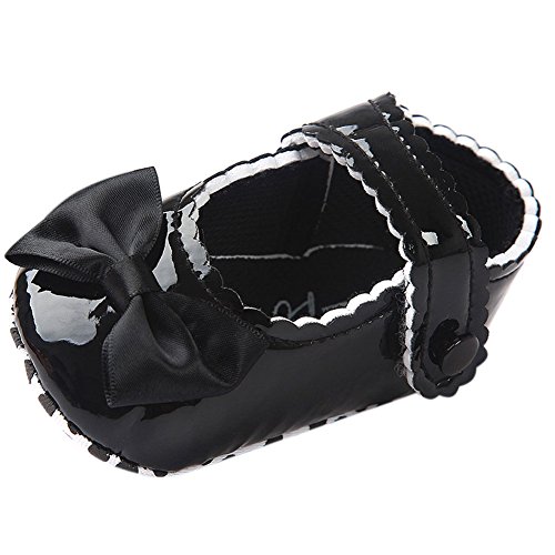 ベビープリンセスシューズ 可愛い蝶結びフォーマル靴 女児 マジックテープ付き王女靴 結婚式 誕生日 PUレザー ブラック 12CM 6-12ヶ月に適応靴 春夏秋