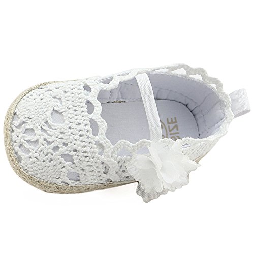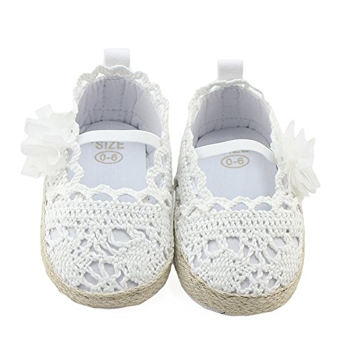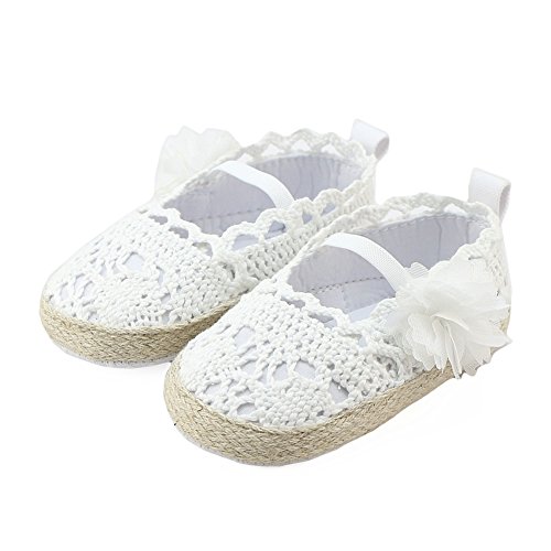 (カエルフロッグ)女の子 プリンセスシューズ メリヤスのシューズ 可愛い王女靴 綺麗 花付け 編み靴 赤ちゃん 柔らかい底 フォーマル靴 結婚式 綿布 ホワイト 0-6ヶ月に対応靴 春 夏 秋