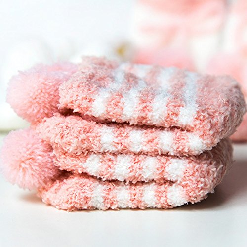 キッズ可愛いソックス 子供ポンポン付きハイ靴下 男の子女の子防寒フットカバー 赤ちゃん 結婚式 誕生日プレゼント出産の祝い ピンクxホワイトxストライプ 厚い綿 0-1歳に適用 秋冬春 3足セット