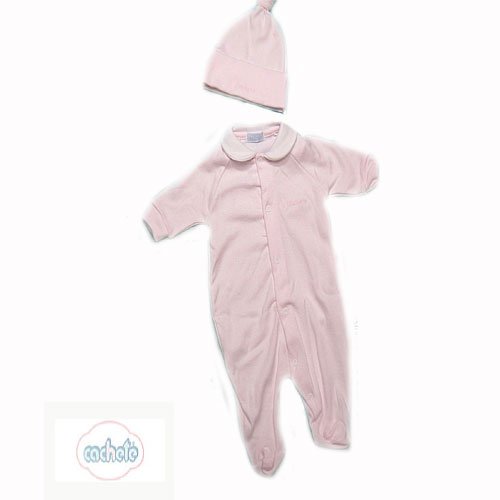 品質重視 スペインブランド カチュテ ベビーカバーオール帽子セット (ピンク)