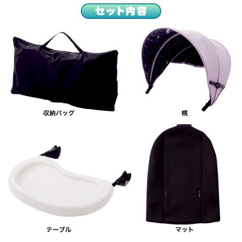 テーブル、幌、マット、専用バッグ付き。