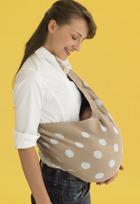 ドット柄でキュートに。 お母さんは赤ちゃんと密着できる楽しみと、おしゃれをする楽しみを同時に味わえる。
