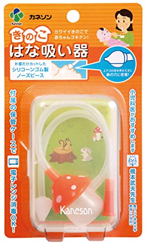 ●【商品説明】●「カネソン きのこはな吸い器」は、赤ちゃんの取りにくい鼻水をママが口で吸い取る鼻吸い器です。●横穴設計となっており、寝かせたままでも、抱きかかえたままでも、自然な姿勢で楽に鼻水を吸い取ることができます。●ノーズピースは赤ちゃんにやさしいシリコンゴム製で、片側をカットしているので鼻の穴にピッタリフィットします。●取った鼻水はボトルにたまり、逆流しないようになっています。●マウスピースは、吸引の微妙な調整が口元でできるようになっています。●【使用方法】●■使い方マウスピースを口にくわえ、片手で赤ちゃんを支え、もう一方の手でノーズピースの平らな部分を下にして鼻に密着させ、お母さんが吸引力を調節しながら吸い取ってください。●■電子レンジ消毒(1)消毒前にていねいに洗浄。●(2)各部品を保管ケースに収めて水を15cc(大さじ1杯)入れる。●(3)電子レンジ(600W)で3分間加熱。●■お手入れ・最初のご使用の際は各部品を流水またはぬるま湯でよく洗ってください。●・使用後は各部品をはずし、食器用洗剤などでていねいに洗浄してください。●・すべての部品が煮沸・...