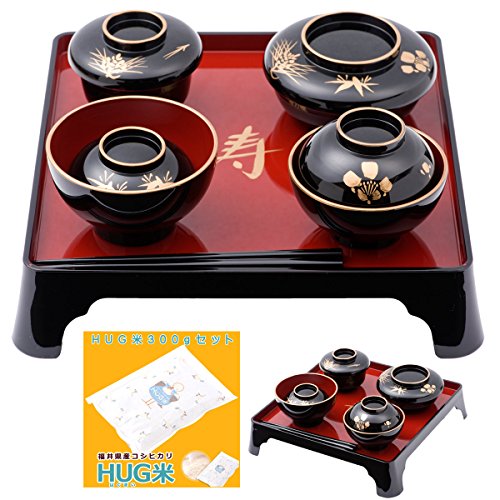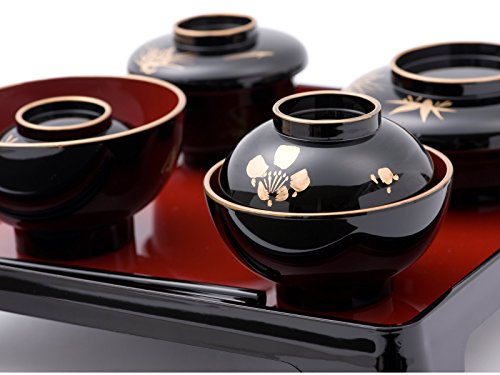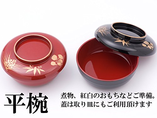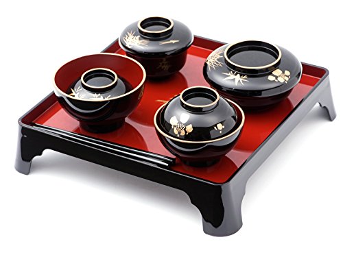 - 膳:25.5x25.5x高さ5.8 お箸:18 飯椀:φ10x高さ6 汁椀::φ9x高さ8つぼ椀:φ8.5x高さ7 平椀:φ10x高さ6