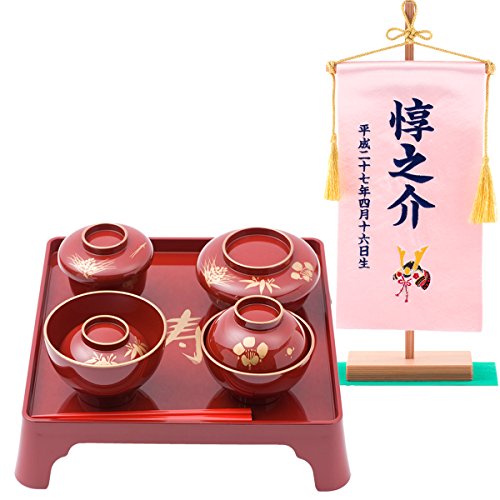 - 膳:25.5x25.5x高さ5.8 お箸:18 飯椀:φ10x高さ6 汁椀::φ9x高さ8つぼ椀:φ8.5x高さ7 平椀:φ10x高さ6 cm