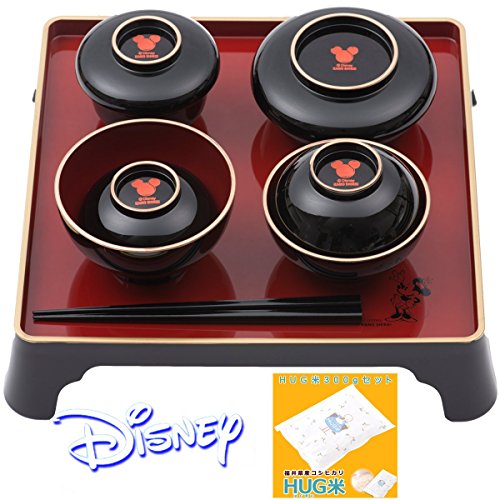 - (寸法は約、単位cm)膳:25.5x25.5x高さ5.8 お箸:18 飯椀:φ10x高さ6 汁椀::φ9x高さ8 つぼ椀:φ8.5x高さ7 平椀:φ10x高さ6
