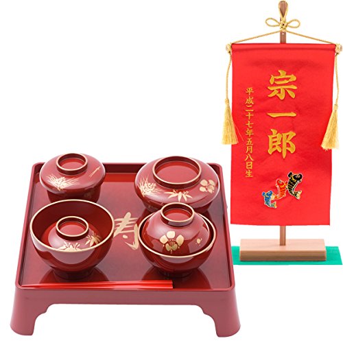 FUN fun (ファンファン) お食い初め 食器セット 食器 男の子 6点 名前旗 レッドセット