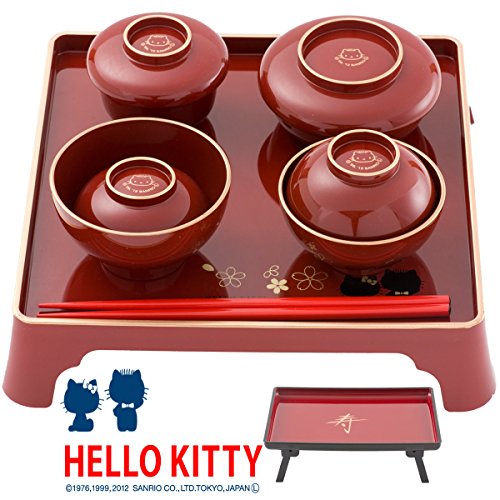 - (寸法は約、単位cm)膳:25.5x25.5x高さ5.8 お箸:18 飯椀:φ10x高さ6 汁椀::φ9x高さ8 つぼ椀:φ8.5x高さ7 平椀:φ10x高さ6