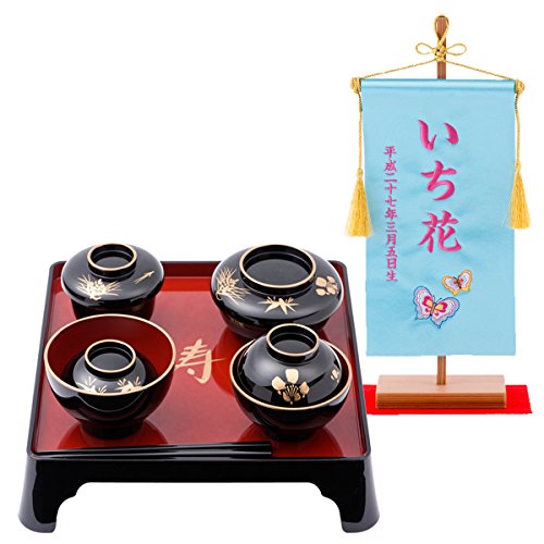 - (寸法は約、単位cm)膳:25.5x25.5x高さ5.8 お箸:18 飯椀:φ10x高さ6 汁椀::φ9x高さ8 つぼ椀:φ8.5x高さ7 平椀:φ10x高さ6