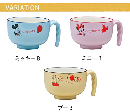 安心の日本製!ミッキー、ミニー、プーさんのキッズ用食器小さなお子様にぴったりなキッズサイズの持手付きのスープ椀。うれしい電子レンジ・食器洗い機対応!落としても割れにくくて軽くて丈夫です。柄はミッキー、ミニー、プーさんの3種類を用意いたしました。 同じデザインの食器で揃えて使えばお子様もニコニコ!■サイズ:直径12.3×9.8×6.6cm■容量:280ml■材質:飽和ポリエステル樹脂とABS樹脂の混合■塗り:ウレタン塗装■原産国:日本(Made in Japan)■備考:電子レンジ対応、食洗機対応