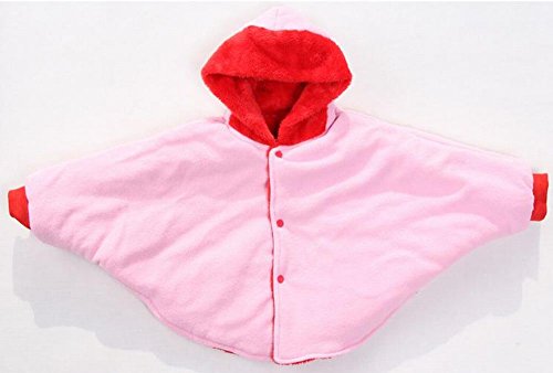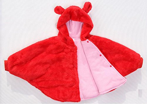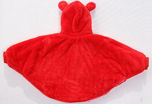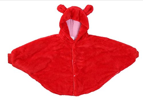 選べる 2色 かわいい 赤ちゃん ベビーマント コート ポンチョ くまさん リバーシブル ベージュ 赤 (L, 赤)