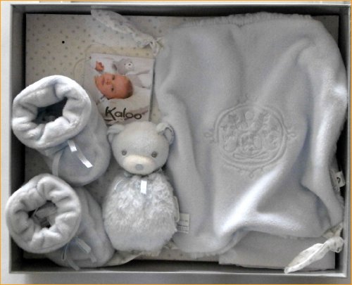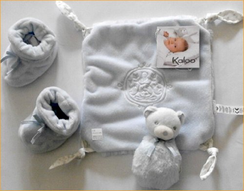 【カルー】フランス生まれ タオル製ベビー服 ブーティ 抱っこ毛布 お寝ね毛布 ギフトセット =とっても柔らか マイクロファイバー=出産祝いやギフトにもどうぞ (ブルー)
