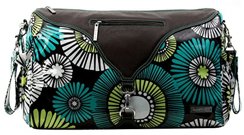 This diaper bag's zippered top opens to roomy interior with 3 pockets and 2 bottle loops. This bag's water repellant exterior and interior easily wipes clean. Also featuring a comfortable, adjustable shoulder strap and detachable stroller straps, 4 outside pockets, a matching insulated bottle bag, coordinating zippered pouch and a large fold-out padded changing pad. Kalencom Diaper Bags are AZO free. We use no Phthalates/DEHP, or DBP in our PVC.