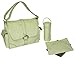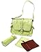 Easy to wipe clean interior and exterior, 14L x 6W x 11H;Includes a coordinating zippered pouch for soiled clothes, a changing pad and an insulated bottle holder;Adjustable shoulder strap;Magnetic closure;Metal feet