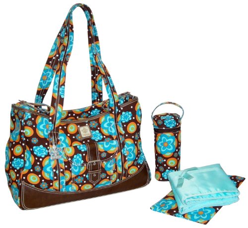 - Kalencom Fashion Diaper Bag, Changing Bag, Nappy Bag, Mommy Bag, Nylon Bag, Weekender Bag (Flower Power Blue)