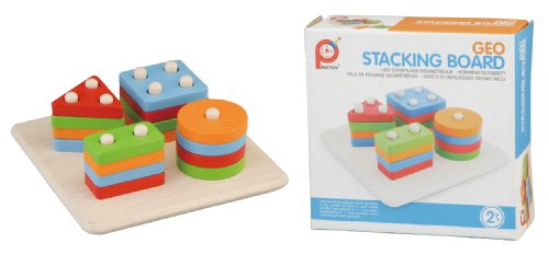円形、三角形、正方形、長方形の4つのカラフルなパネルがセットになっております! パーツの穴の数とボードのペグ数を合わせながら積み重ねて遊びます。 ■パッケージサイズ:約H210×W210×D85mm ■パッケージ重量:640g ■生産国:タイ ■対象年齢:2歳から