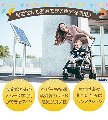 - 駅の自動改札も通過できる車幅を実現!大人気ベビーブランド「イングリッシーナ」のベビーカーです。安定感がありスムーズな走行ができるタイヤなので、颯爽とベビーカーを押すことができ、シティ使いに便利です。ベビーも快適なお出かけができるように、紫外線カット&通気性が良い幌を搭載。メッシュ窓から赤ちゃんの様子を見ることもできます。さらに、レインカバーが付いているので突然の雨も防ぐことができます。ママ一人でもワンアクションで折りたたむことができるので、収納や車の荷台に積むときにもスムーズです。グリーン・ブルー・ブラック・レッド・限定のカラーからお選びいただけます。