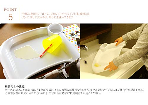 ・付属の専用トレーはドリンクホルダー付でコップの転倒を防止。食べこぼしが広がらず、外して水洗いできます。