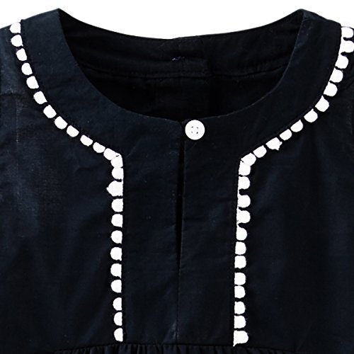 - ☆高級感漂うブラックのコットンポプリ生地素材です。胸元にクロケット(鎖編み)の水玉が付いた超エレガントなデザインです♪♪