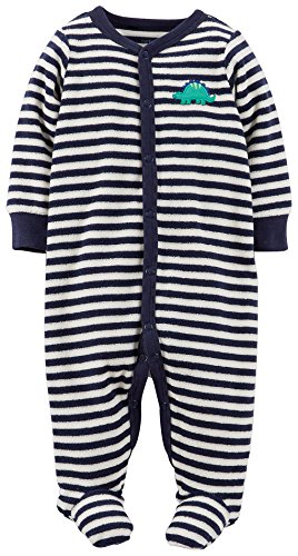 カーターズ carter's baby line 長袖足つきカバーオール パイル素材 9ヶ月 紺 オフホワイト ボーダー 恐竜 115A200 【並行輸入品】