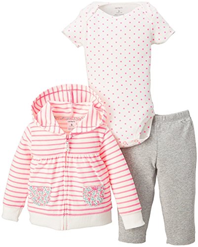 カーターズ carter's baby line 長袖パーカー 半袖ロンパース パンツ セット 6ヶ月 ピンク ボーダー 水玉 綿 121C772 【並行輸入品】