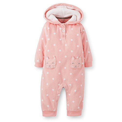 Snaps at the legs and button-front closures for easy changes;Nickel-free snaps;Ribbed cuffs keep sleeves and legs in place;kitty-shaped pockets, allover polka dots and super soft velboa lining at the collar;Jumpsuit: 100% polyester microfleece; hood lining: 100% polyester velboa