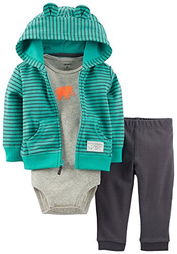 カーターズ carter's baby line 長袖パーカー 半袖ロンパース パンツ セット 6ヶ月 緑 ボーダー ゾウ グレー 綿 121C700 【並行輸入品】