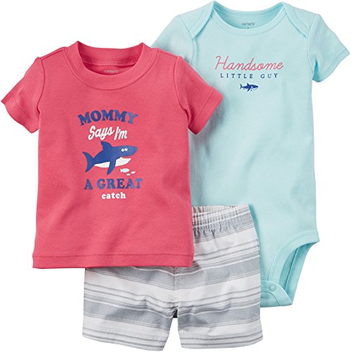 カーターズ carter's アパレル baby line 男の子3点セット ロンパース Tシャツ ショートパンツ ブルー レッド マルチ 綿 121G505 【並行輸入品】 9ヶ月
