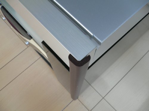 テーブルの脚や柱の角などに、付属の両面テープで簡単に取り付けできる。