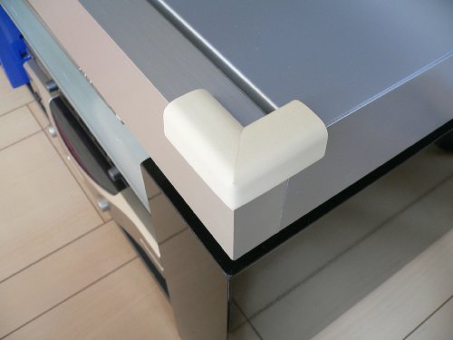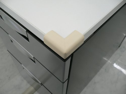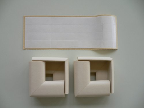 テーブルの角やテレビ台の角などに、付属の両面テープで簡単に取り付けできる。