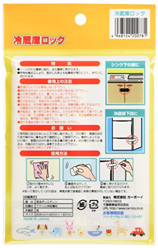 ●【商品説明】●「カーボーイ 冷蔵庫ロック」は、冷蔵庫に貼る事により、お子様の思わぬ事故を防ぐセイフティグッズです。●誤飲・誤食を防ぎます。●シールなので簡単に貼る事ができ、剥がすのも楽々です。●特殊粘着加工により、剥がした後も粘着剤が残りにくく、きれいに剥がれます。●冷蔵庫の色などにより使い分けられる、黒・茶各2個入り。●【使用上の注意】●(お願い)ご使用前に目立たないとこころで試し貼りをして、のり残り、表面のはがれ落ち等がない事を必ずご確認の上、ご使用下さい。●素材によっては、のり残り・表面のはがれ落ち等があることがあります。●のり残りがあった場合は、市販ののりはがし液等でふき取ってください。●*木(化粧合板)は特にご注意下さい。●(使用上の注意)●気温0度以下では使用しないでください。●直射日光が当たったり水がかかるところに貼らないで下さい。●火の側で使用したり、置いたりしないでください。●ザラザラした面やでこぼこした面へは使用しないでください。●肌に貼るなど、用途以外には使用しないでください。●本製品は、お子様の事故を予防したり、被害を最小限に...