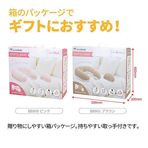 エールベベ AILEBEBE ギュット4WAY抱き枕(抱き枕/くつろぎ枕/授乳クッション/お座りサポート) プレママの眠りをサポート/お腹にフィットするスロープ形状/腰をささえるサポートクッション付き/ビックサイズ/洗えるカバー/肌に優しいコットン生地 ブラウン BB801