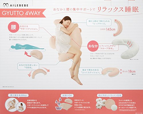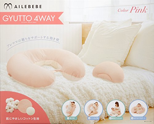 エールベベ AILEBEBE ギュット4WAY抱き枕(抱き枕/くつろぎ枕/授乳クッション/お座りサポート) プレママの眠りをサポート/お腹にフィットするスロープ形状/腰をささえるサポートクッション付き/ビックサイズ/洗えるカバー/肌に優しいコットン生地 ピンク BB800