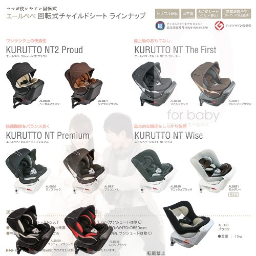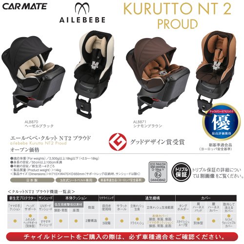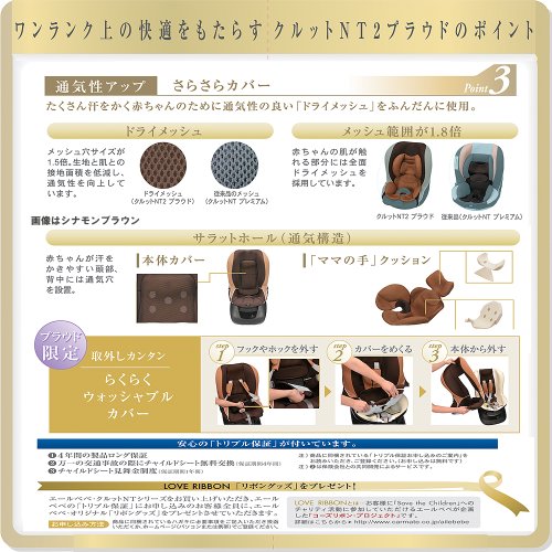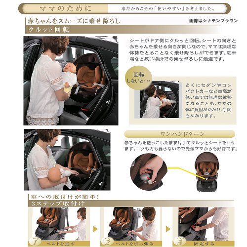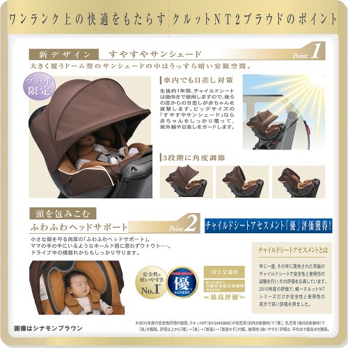 カーメイト エールベベ クルットNT2プラウド 新生児から4歳用チャイルドシート(サンシェード付360度回転型) シナモンブラウン
