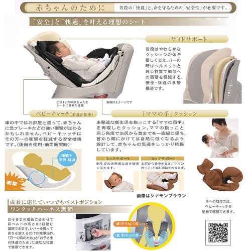 ワンタッチハーネス調節、衝撃軽減システム「ベビーキャッチ」(特許登録済)を搭載。