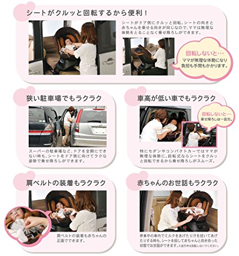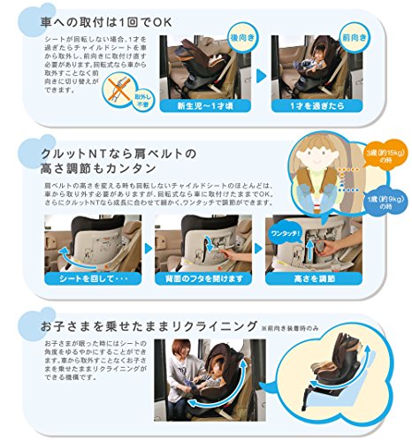 カーメイト エールベベ クルットNTプレミアムW 新生児から4歳用チャイルドシート(サンシェード付360度回転型) ブラウンオレ